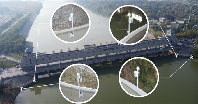 图3:阜阳闸翼墙两端安装北斗监测站