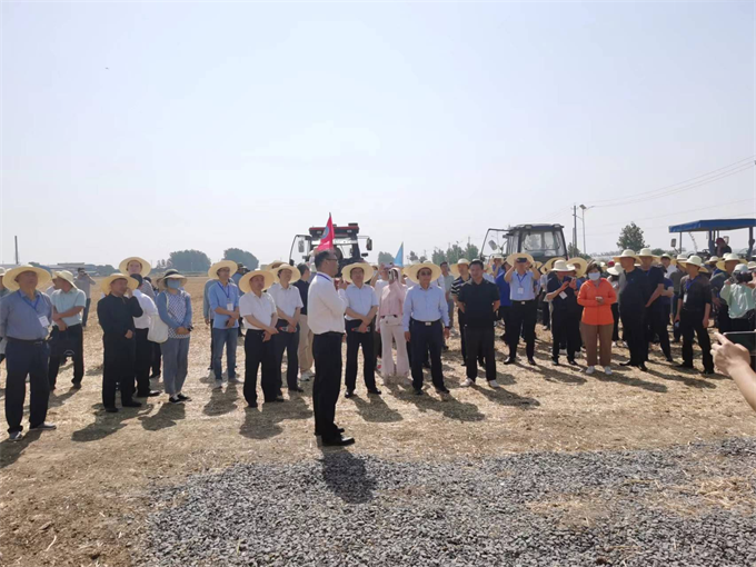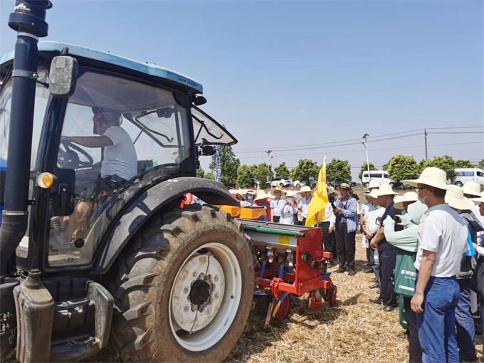 与会人员来到埇桥区朱仙庄镇镇西村大豆玉米示范基地,现场观摩农资、农机展示及大豆玉米播种情况。现场13台农用拖拉机均装配了沙巴体育平台北斗导航农机辅助驾驶系统,该系统实现了条田接行准确,播行端直,具有播种质量高的特点,作业内容符合大豆玉米带状复合种植夏播夏管的技术要求,是实现智慧农机的重要技术支撑,获得现场与会人员一致认可。